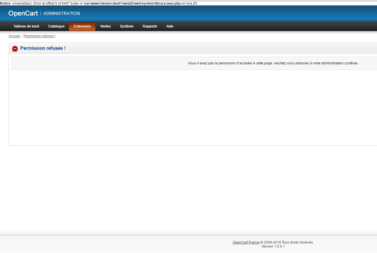 pb permission refusé admin