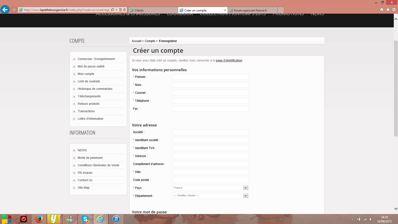 Je n'arrive pas a faire enlever les certaines informations qui paraissent obligatoires pour mes clientes pendant la création d'un nouveau compte.